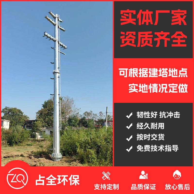 单管塔是一种实用新颖铁塔,以外表美观,占地面积小,性价比高,而被广大建设单位采用。本公司生产的通信单管塔占地面积为 9-18m 2 ,塔体采用较合理的节段,通过连接器用高强度螺栓联接,使安装方便、快捷,并能适应多种野外较复杂场地的安装。