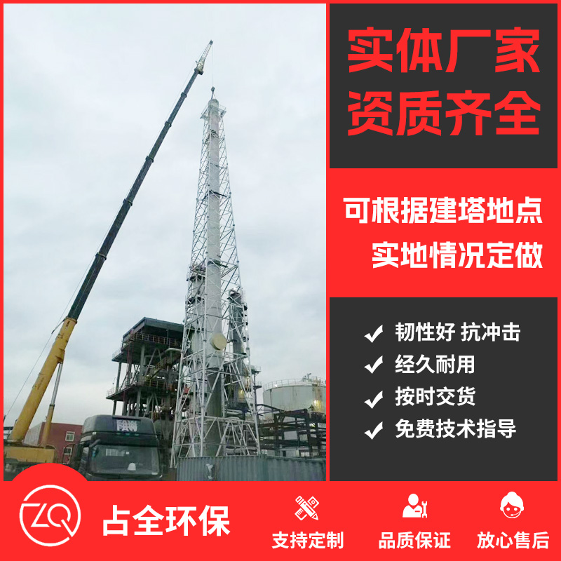 烟囱塔是用钢结构固定支架来支撑点烟囱管身的一种结构,有独立式和吊线式,多用以化工厂、石油部门、可燃气体排污机器设备等,